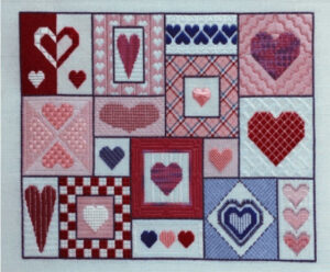 You can feel your heart skip a beat when you look at this completely updated design, Hearts Gone Wild by Nancy Cucci! This gorgeous design was taught at ANG Seminars in Baltimore and Milwaukee. Stitched with red, pink, and purple threads, metallics, and beads on white 18-count OR 24 count canvas, this project offers 16 boxes full of playful hearts for your enjoyment. Size: 14” x 17” for 18 count canvas and 12’ x 14” for 24 count congress cloth. Kit includes marked ground, threads, beads, stitch guide and color photo. Remote stitchers are permitted, the workshop will be provided in a hybrid manner, with remote access to Nancy Cucci for questions and stitch demonstrations! Registration is limited, and may close before the deadline.