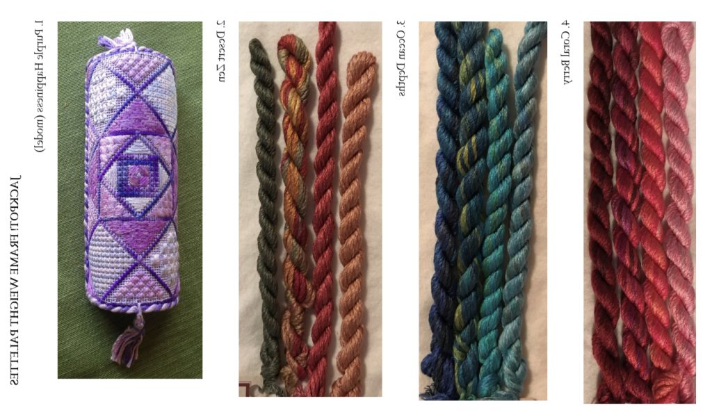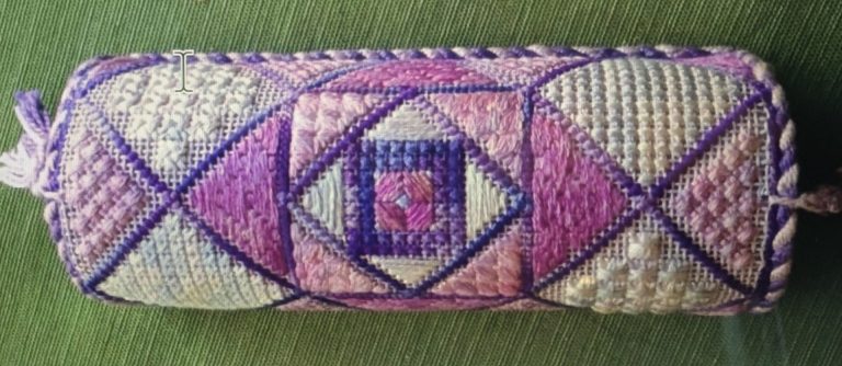 This versatile piece is a “Jackpot” of stitching techniques suitable for all skill levels. The design can be finished as a frame weight, eyeglass case, acrylic tray insert, or even applied to clothing and bags. Of course, it can be framed as well. The design is stitched on a 10” x 12” 18 count mono canvas and the finished piece measures approximately 5 ½” by 3 ½”.